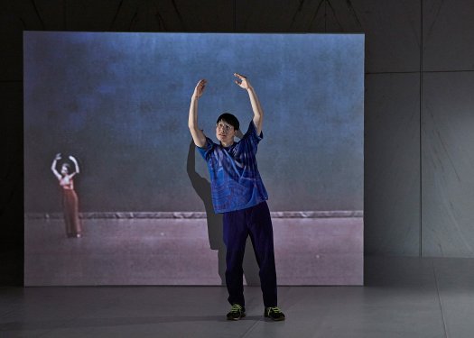 La grâce de Kono atari no dokoka tient à son extrême simplicité et à sa pudeur pleine de respect. Michikazu Matsune raconte et interroge Martine Pisani après avoir mené une investigation sur son travail. Il ressuscite certaines de ses pièces à travers des commentaires, des archives projetées ou en les dansant avec Kooijman. Leur illustration littérale du duo Deux femmes courant sur la plage, créé en 1986 d’après la toile éponyme de Picasso, fait sourire de plaisir tant elle se révèle aussi proche du geste cubiste du peintre que de l’esprit obsédé par l’instabilité de Martine Pisani.